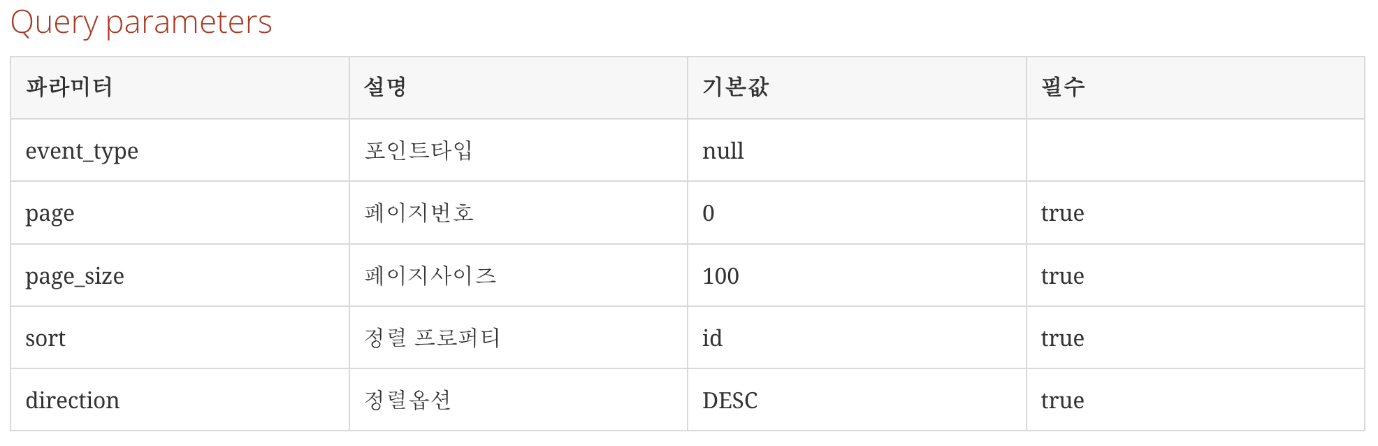 RequestDocumentation.parameterWithName("page_size").description("페이지사이즈").defaultValue(100),
