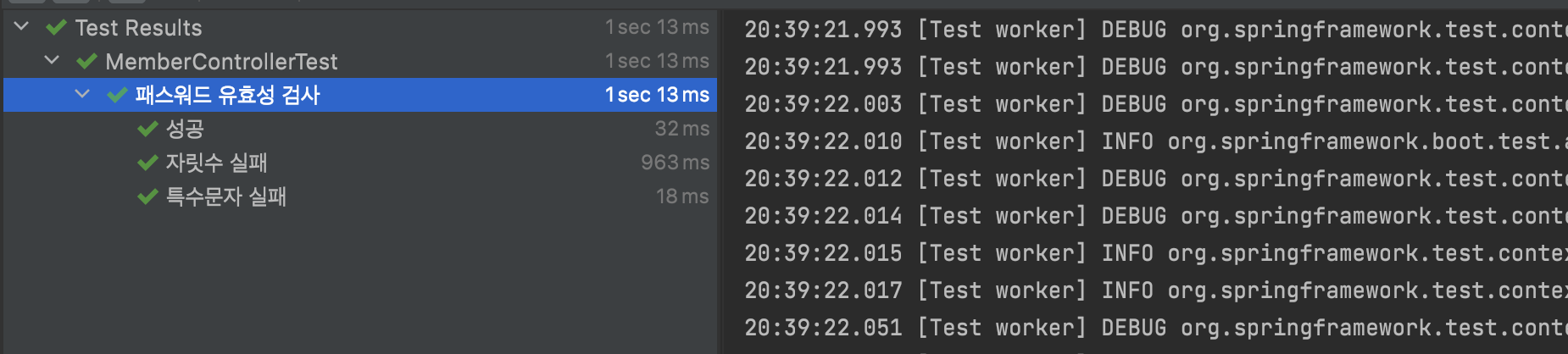 위의 코드를 작성하고 패스워드 프로퍼티에 PasswordValid 애너테이션을 붙여주고 테스트를 해보자